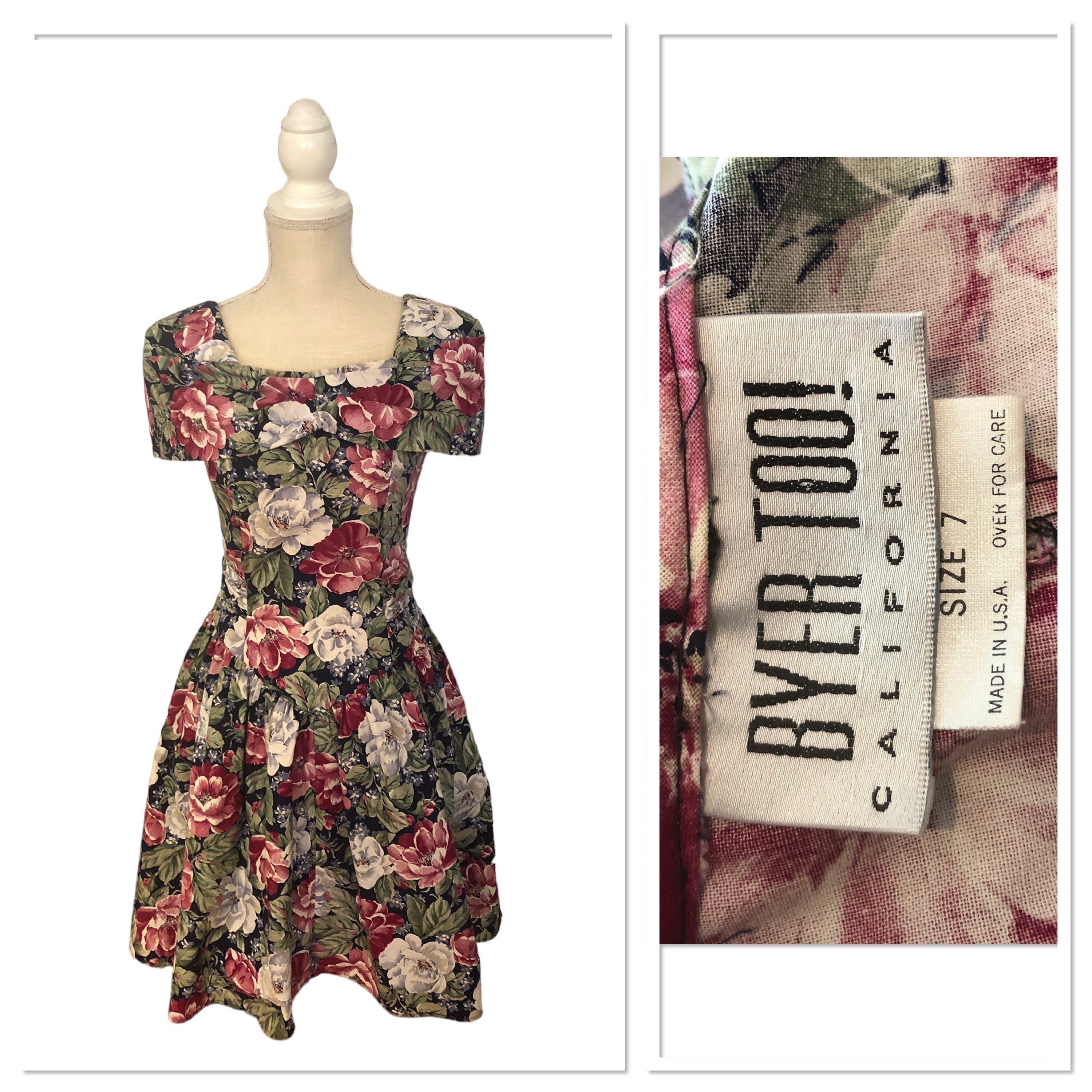 Vintage Byer Too California 1980 S Floral Party Dress Cottagecore Size 7 Etsy