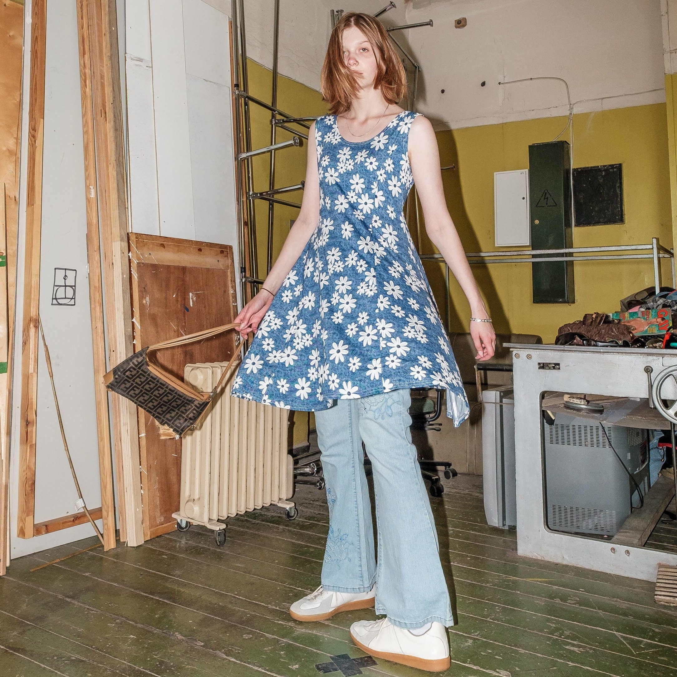 Vintage 1970s To 1980s Byer Too Dress Blue White Polka Dot Print Rea Jumblelaya Vintage